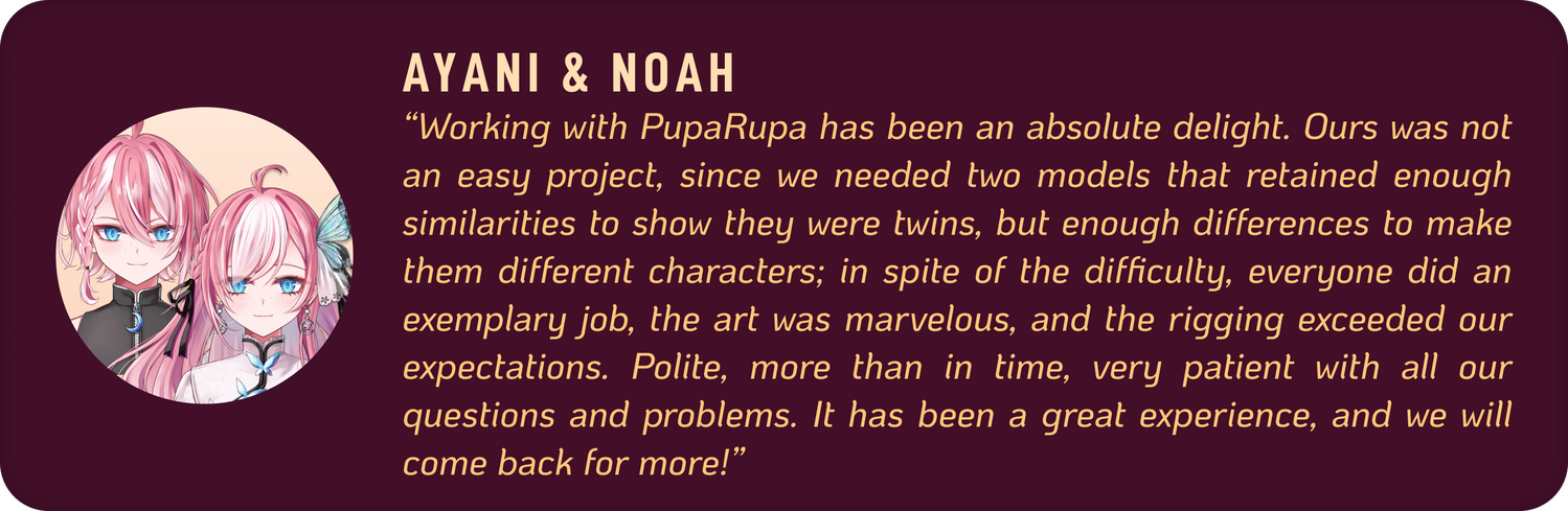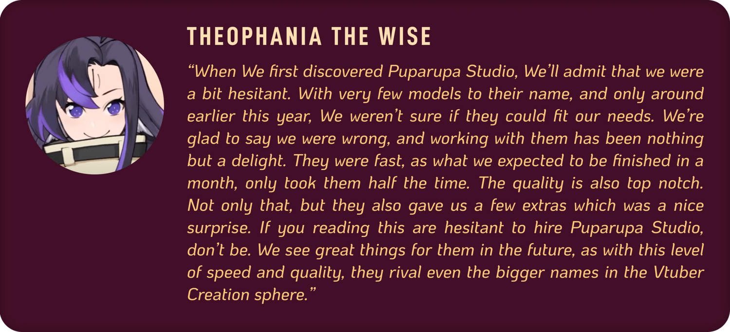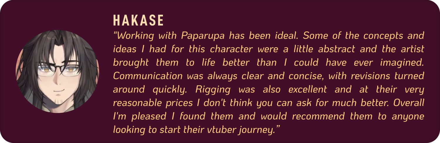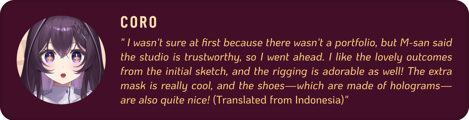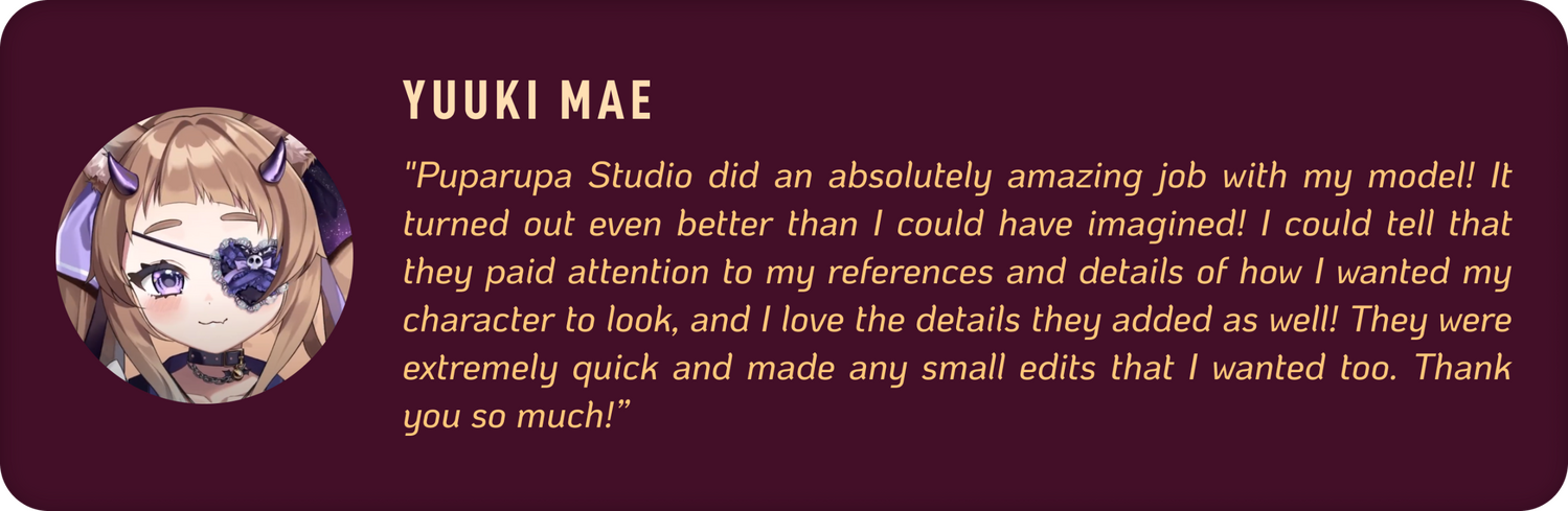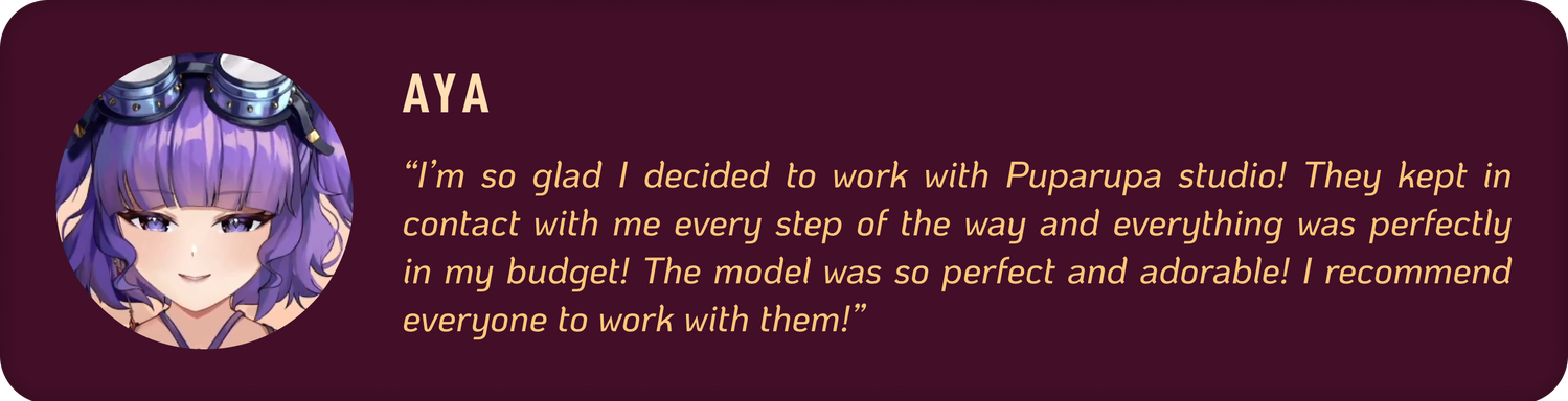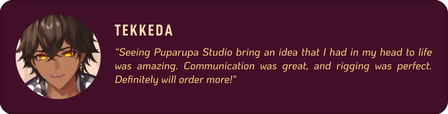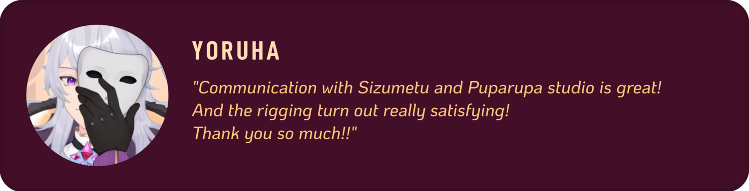 Be your best under the gleaming spotlightWhen it comes to entertaining an audience, a proper impression is a must. A lasting and memorable visual impression to the audience is a key to shine on the big stage.Puparupa aims to pave the convenient path to your stardom. With our flexibility, you can explore any possibilities to your virtual persona.